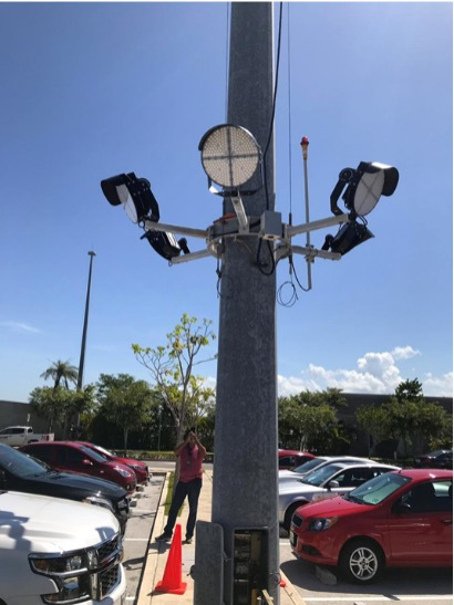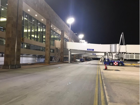 Iluminación de las plataformas y estacionamientos del Aeropuerto Internacional de Cancún, aprovechando la infraestructura actual de postes de 20 mts, con instalación de 336 luminarias.